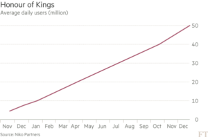 Honor of Kings oyuncuları haftada yaklaşık altı saat boyunca oyuna zaman harcıyor ve her ay Niko Partners’a göre oyunda 6 $ harcıyor. Çin’deki çoğu mobil oyunlar gibi, oyunu indirirken herhangi bir ücret ödemiyorsunuz. Fakat Tencent oyun içinde  yükseltilmiş karakterler ve silahlarla marketi oluşturuyor ve oyun içi to ekstralardan gelir elde ediyor. Honor of Kings, 14 ay gibi bir sürede 200M’den daha fazla indirilme Band sayısına sahip.